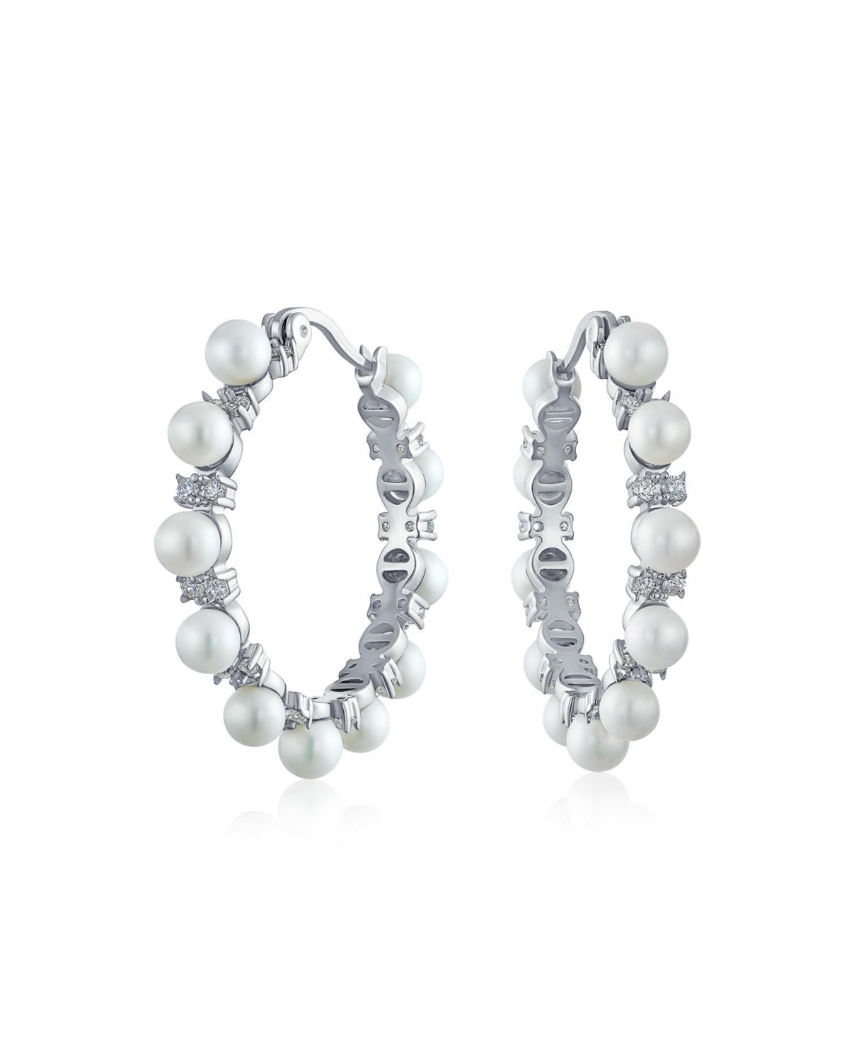 For an element of contemporary style with traditional design in your smaid or look. Choose these timeless modern classic hoop earrings with alternating glass pearl and CZ stones for any special occasion.