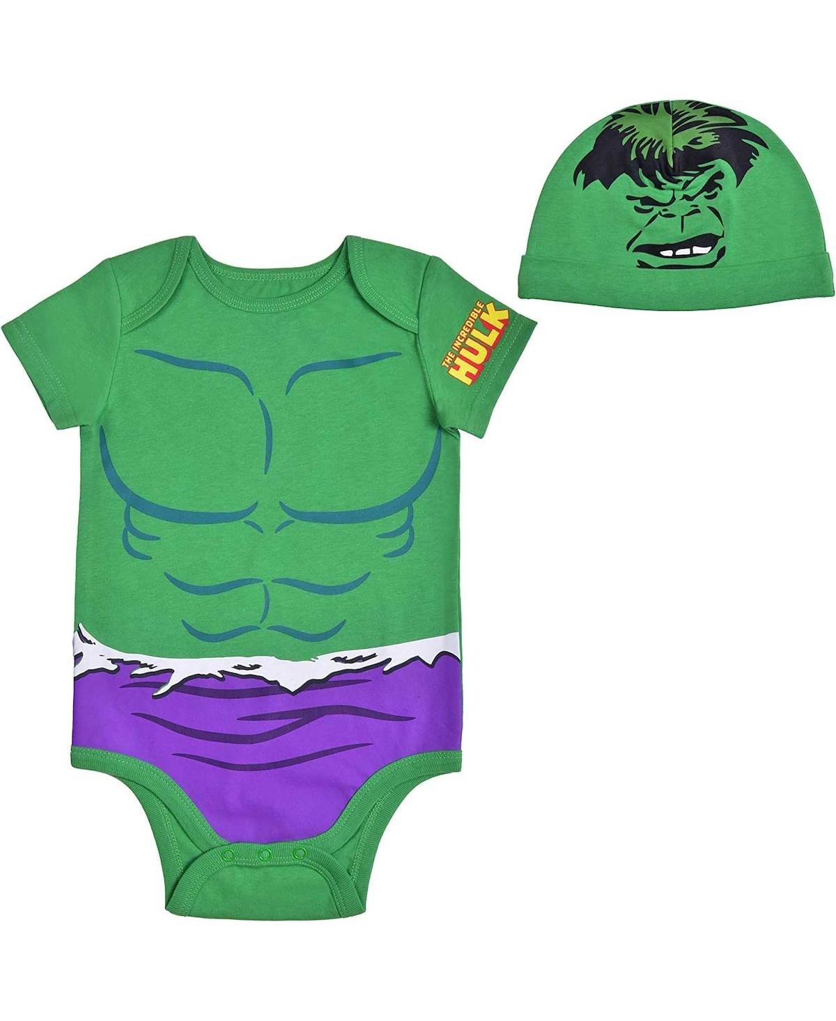 Get your little one ready for the day with this Hulk bodysuit and hat set. It features a three-snap bottom for easy dressing and matching graphics to make your youngster look like the strongest Avenger there is.