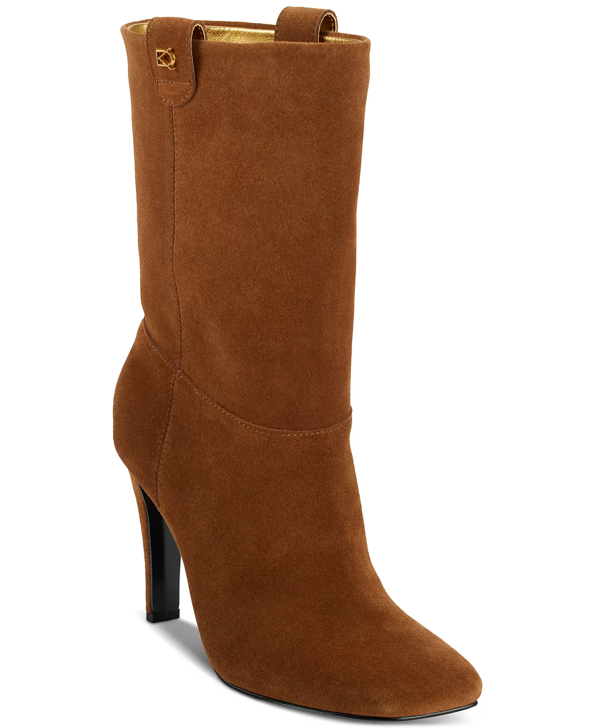 Square toes and stiletto heels elevate slouching shafts for a fresh pull-on look in the Donna Karan New York Donna boots.