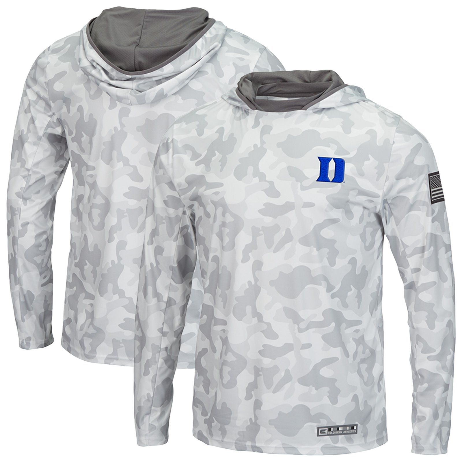 Add a unique, spirited look to your fan gear with this Duke Blue Devils Colosseum OHT Military Appreciate Arctic Camo Hoodie Long Sleeve T-Shirt in White. Designed with a striking arctic camo pattern, this piece combines lightweight comfort with a military-inspired style that stands out on game day or any casual outing.