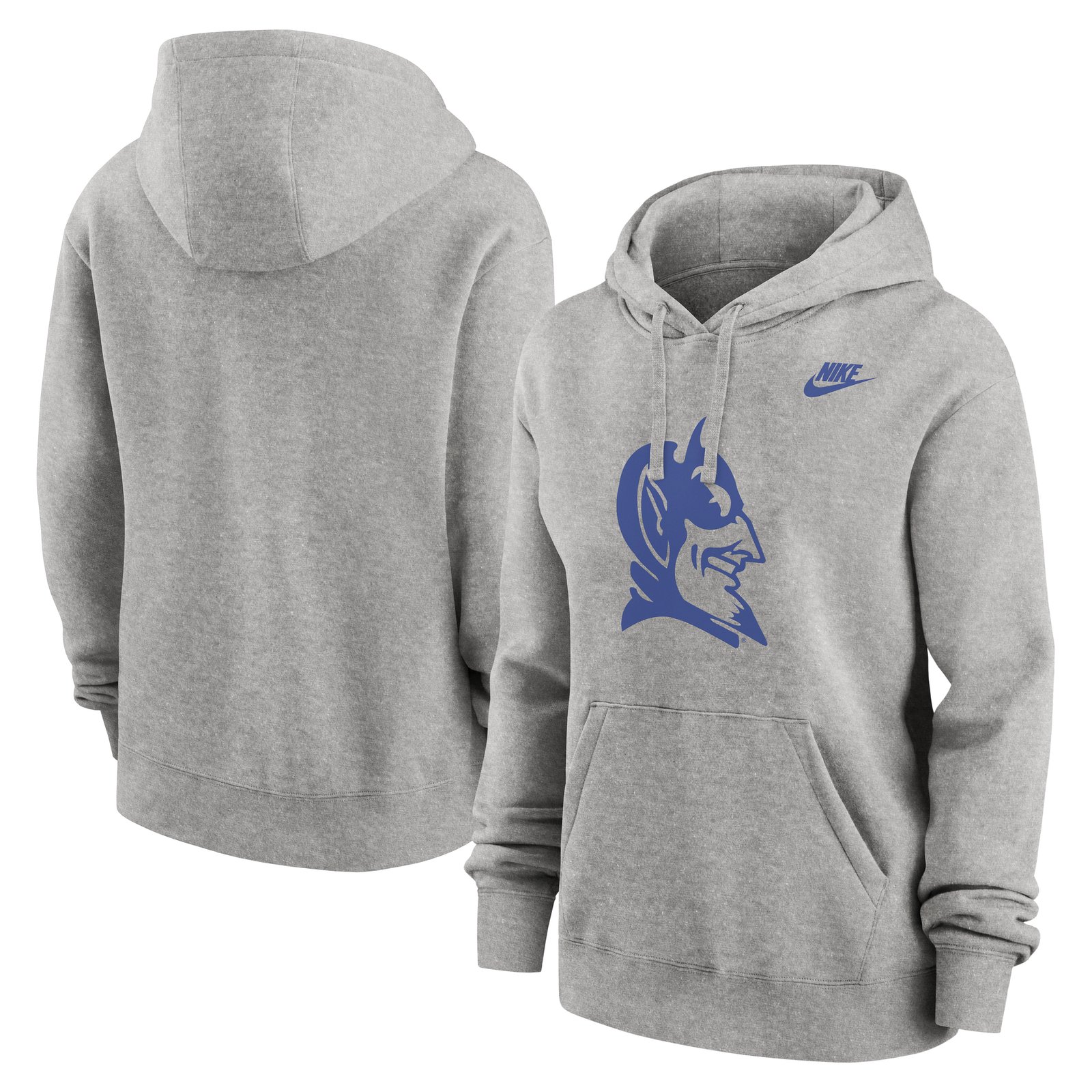 Stay warm while repping your team in timeless collegiate style with the Duke Blue Devils Nike Legacy Logo Club Fleece Pullover Hoodie in Heather Gray. Designed with a soft, classic look, this pullover hoodie features a bold Duke Blue Devils graphic on the front paired with the signature Nike logo for an authentic fan-favorite finish.