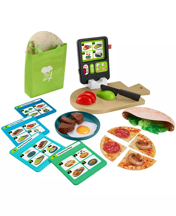 Preschool kids can prep, serve, and discover fresh learning fun with the Laugh Learn 1-2-3 Follow the Recipe Meal Kit from Fisher Price. Inspired by grownup meal kit services, these 30 pieces pretend cooking set features food pieces to “chop” and an interactive tablet toy that reads each recipe card to help guide mini chefs with step by step instructions to prepare each dish. Three Smart Stages learning levels grow along with your child and introduce fractions, size sequencing and more with 125+ songs, sounds and phrases.