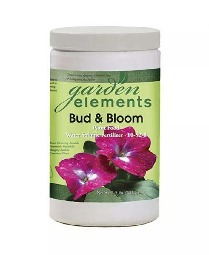 Garden Elements Bud and Bloom Plant Food is a water-soluble fertilizer that promotes larger, more vibrant blooms, stronger root systems and better-looking plants. Great for flowering annuals, perennials, vegetables, hanging baskets and container plants. Formula 10-52-8.