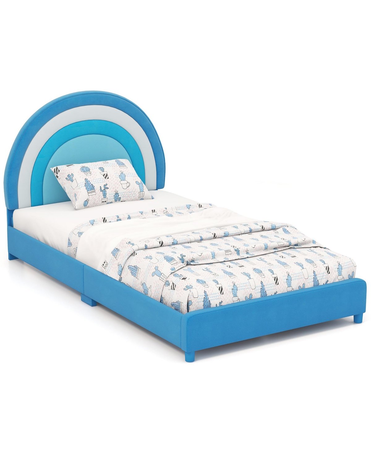 This upholstered twin bed creates a luxurious sleep space for your child with soft velvet fabric and high-density sponge.It features a child-friendly height, solid wood slats, and adjustable headboard height.The bed offers outstanding weight capacity and customizable fit for different mattresses.