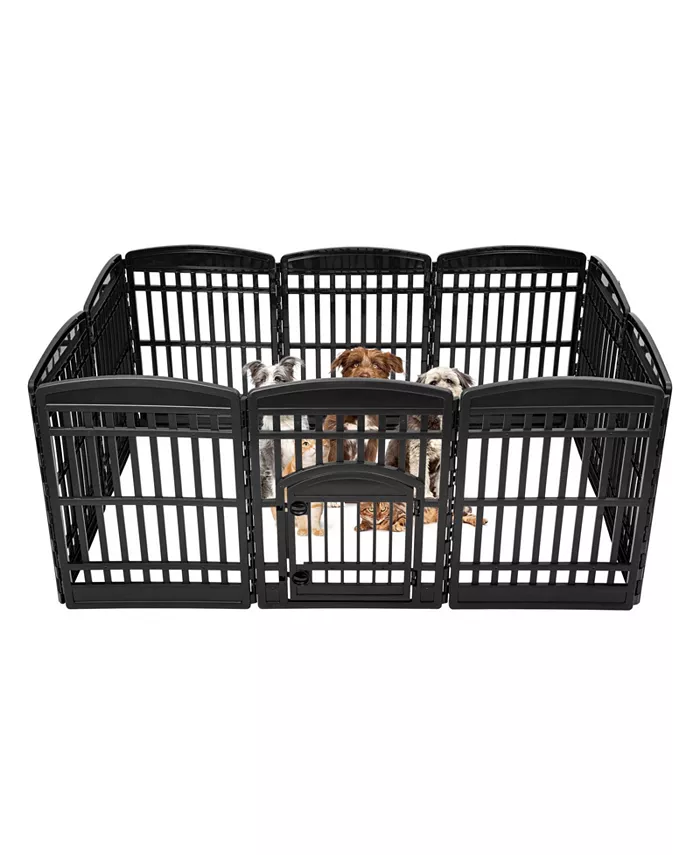 Perfect for puppies, extra small to medium sized dogs and other family pets. Built-in locks on the pet pen door twist to open for easy pet entry. Pet pens can be positioned in different shapes to best suit your space capacity and needs. The plastic panel on the dog playpen securely snaps together.