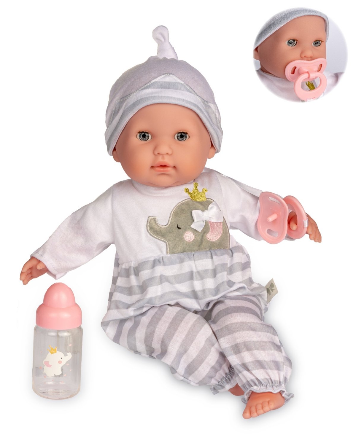 Single Doll set includes removable outfits and Hat and matching pacifier