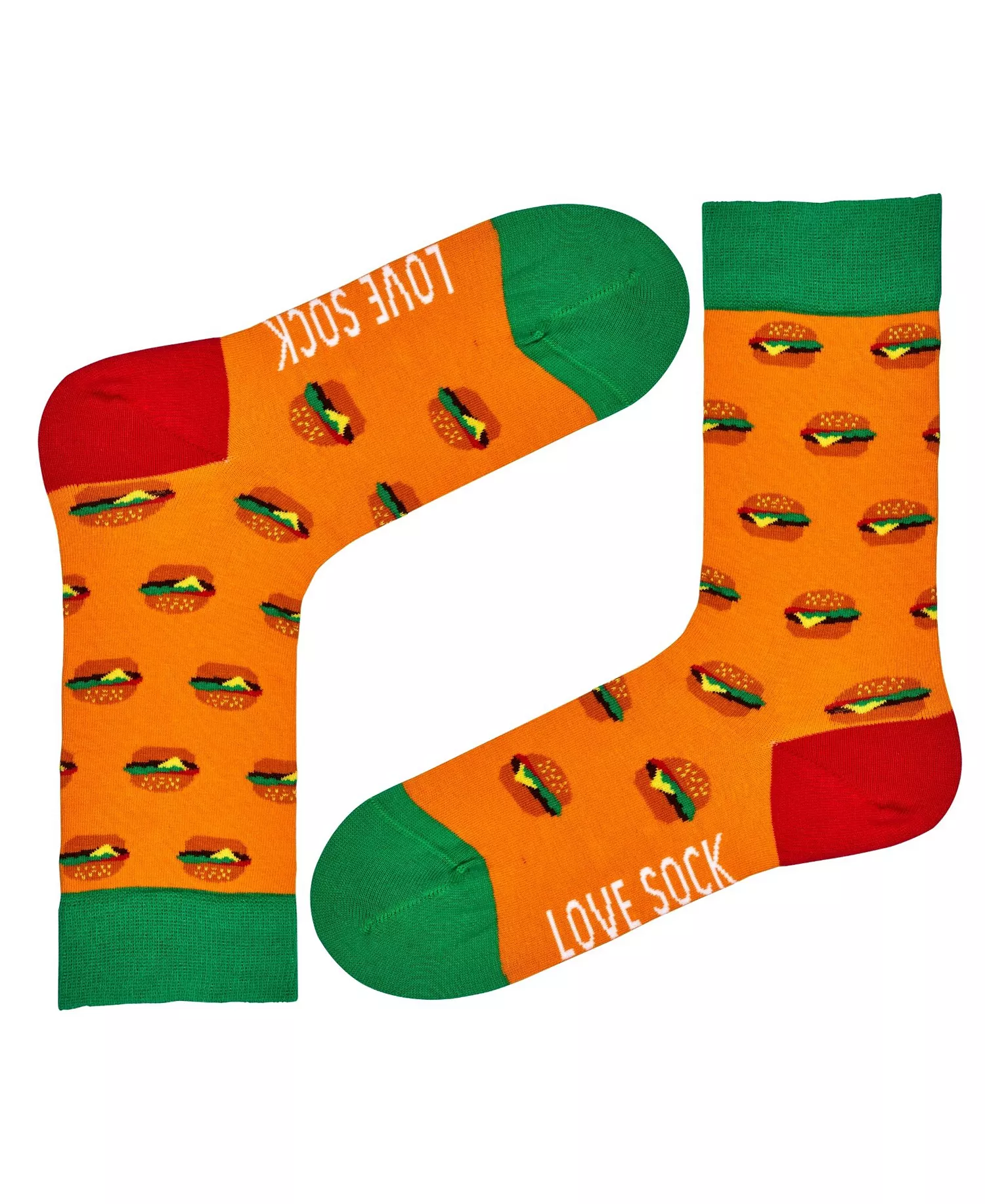 Burger women socks give your feet a little Love with a pair of Love Sock Company super soft cotton funky colorful burger novelty crew socks. This trendy novelty socks make a great gift for Valentines Day, Mother’s Day, Birthdays and for the Holidays. Designed in USA and made in Europe.