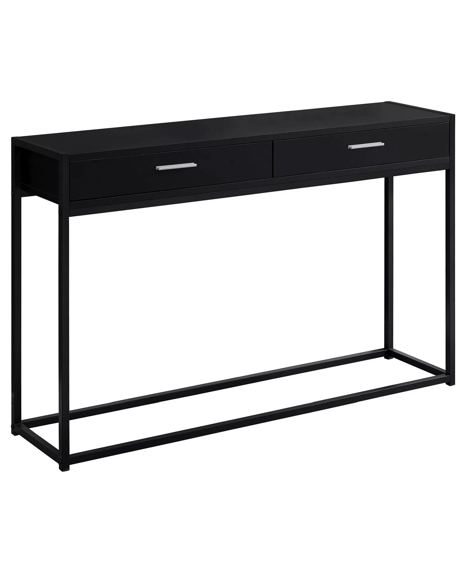 Adding an attractive modern appearance to your entrance is this black hall console table that is made for decor items, electronics or more With two practical storage drawers, you can stay organized and make a statement at the same time.