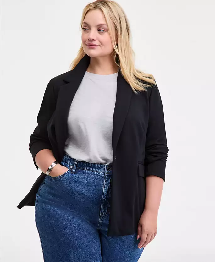 Some pieces just make the whole outfit click. The On 34th Trendy Plus Size Longline Ponté-Knit Blazer, created exclusively for Macy’s, is that piece.