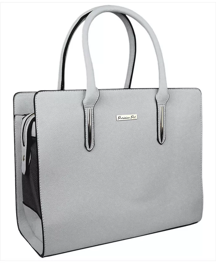 Elegant Design with Faux Leather and Gold Accents: This luxury pet carrier features a seamless blend of high-quality gray faux leather and contrasting golden accents, adding style to any outfit.