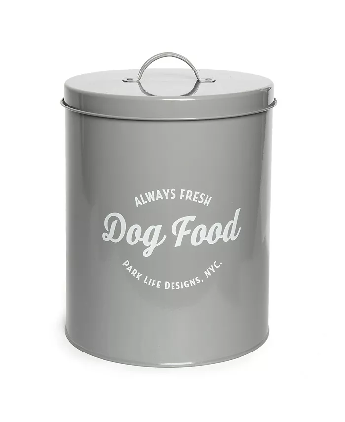 Give your furry friend a stylish treat with Park Life Design s trendy treat jars. Perfect for pet lovers, the grey “Wallace” food storage canister is a splendid storage solution, whether storing Fido s favorite food or hiding human treats. Each stylish container is crafted from heavyweight, FDA-approved carbon steel that stands strong against slippage and spills. An airtight silicone seal keep contents fresh while blocking moisture, contaminants, and pests.