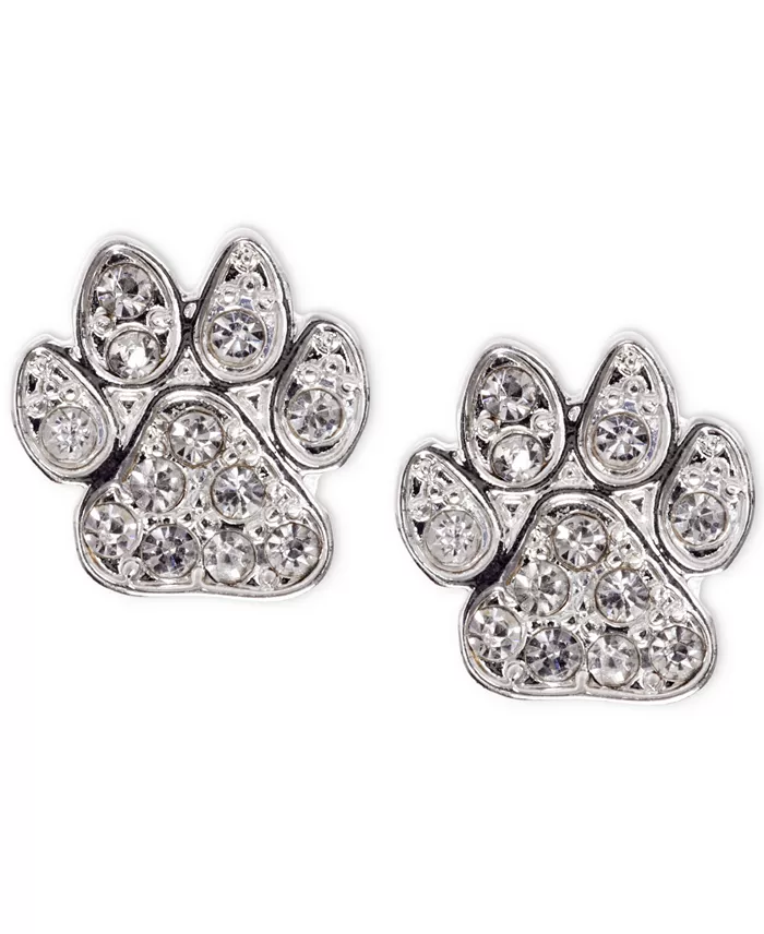 Silver-Tone Pavé Paw Stud Earrings