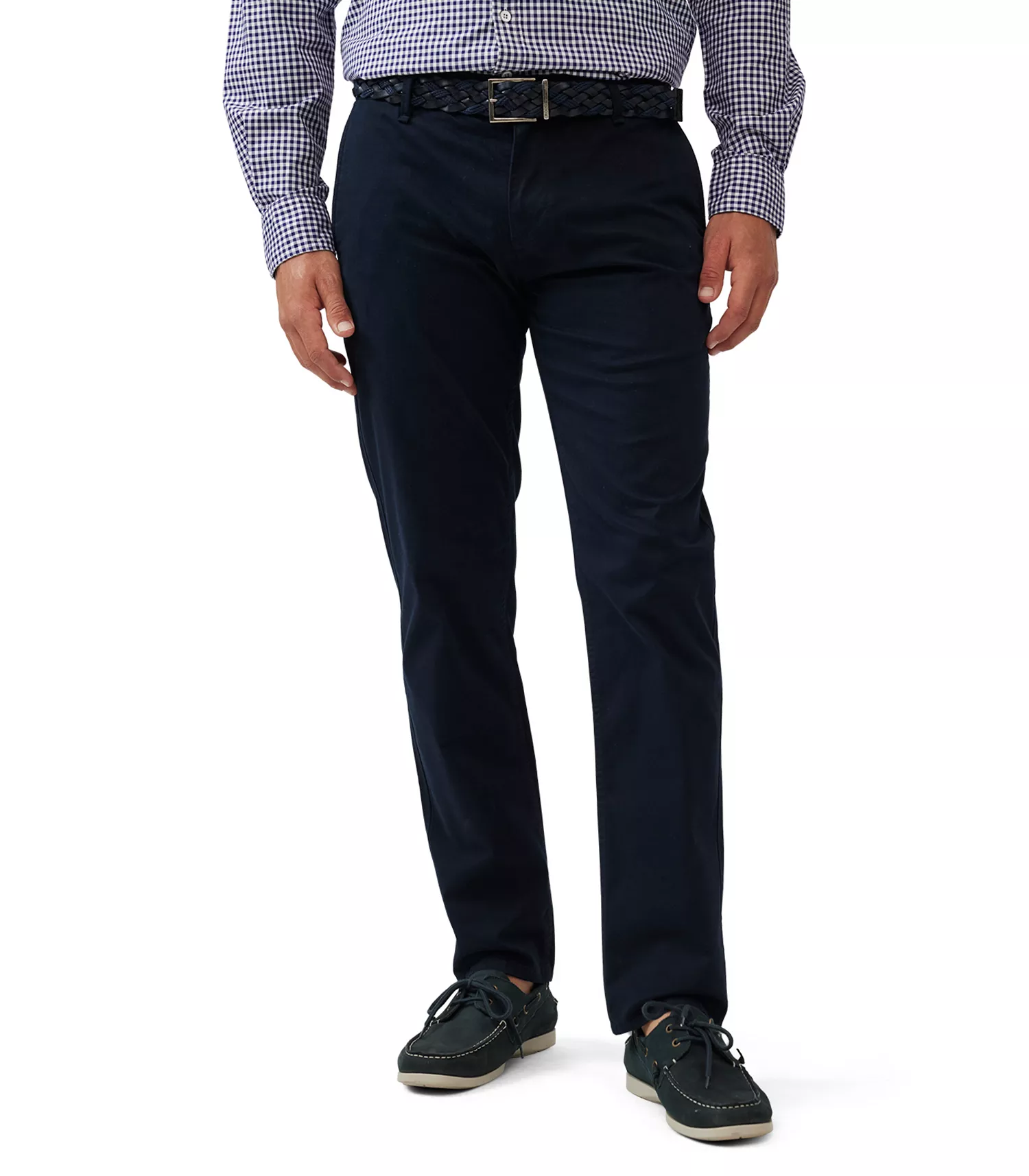 These clean lined chinos are cut from an ultra smooth cotton sateen fabric, with a brushed effect for ultimate comfort. Woven in Italy, and enriched with a small amount of stretch to allow for greater movement and durability. Designed with straight forward chino styling and our popular custom fit.