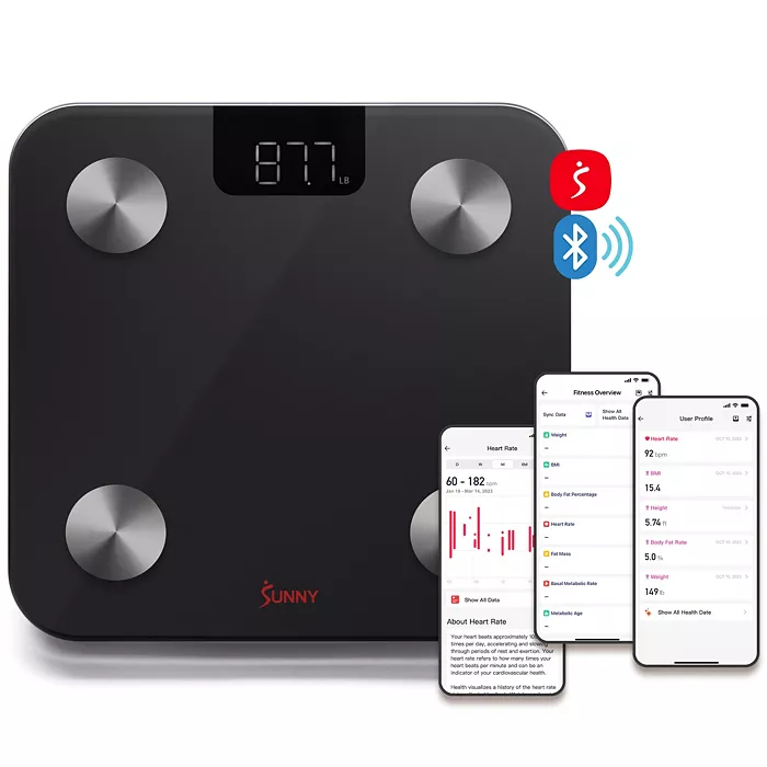 IN-DEPTH BODY ANALYSIS: Each of the 20-health metrics can give even more information with just a tap on SunnyFit. See target weights, recommended ranges, progress, articles, and more for every metric to have a deeper understanding of your progress.