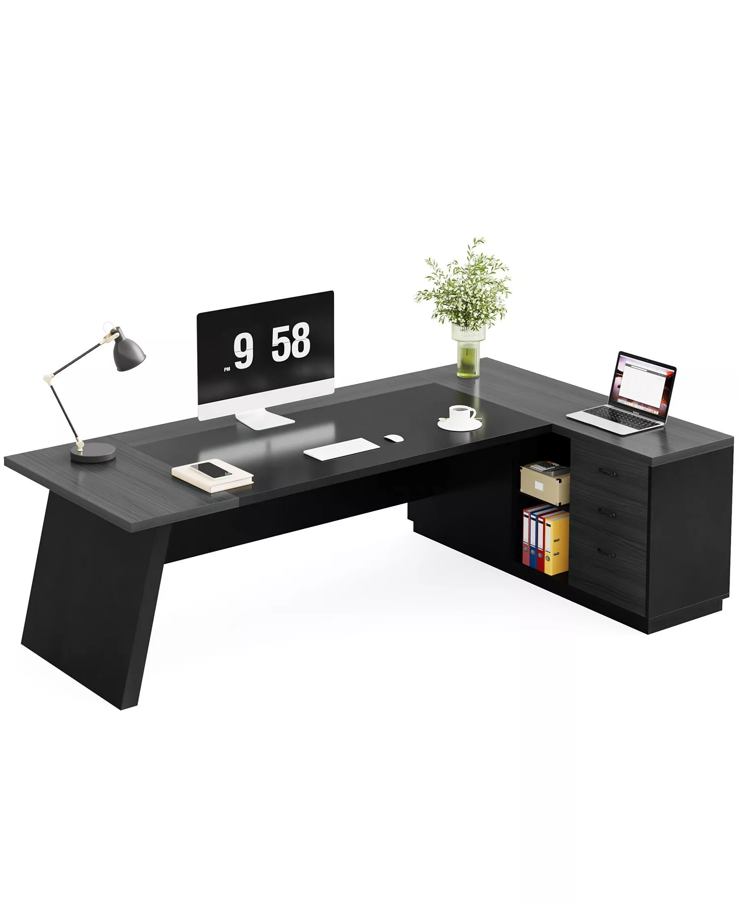 【Large Executive Desk Dimensions】: Boasting dimensions of 78.74″L x 55.11″W x 29.53″H, this desk offers an expansive workspace, perfectly accommodating various items, from bulky monitors and laptops to books, documents, and personal items.