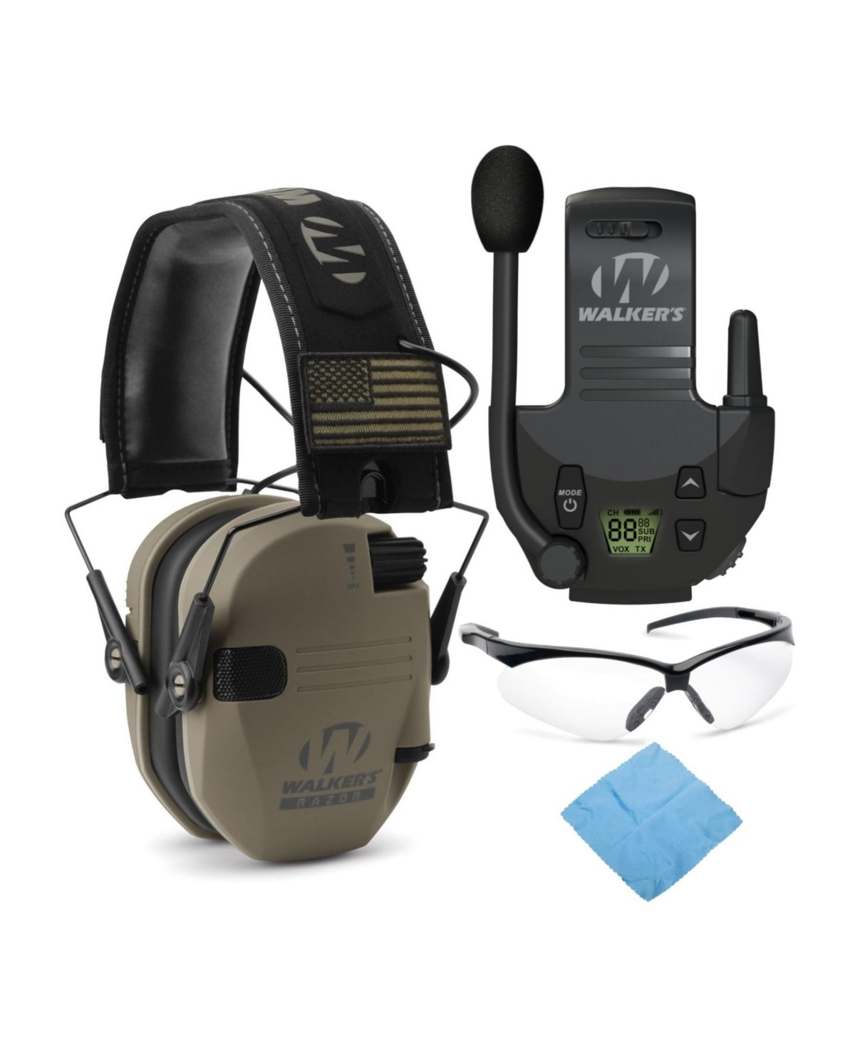 Protect your hearing from loud noise with the Walker s Razor Slim Electronic Muff. This set contains a Walker’s Razor Slim Electronic Muff (FDE Patriot Version), Walker’s Razor Tactical/Hunting Walkie Talkie Attachment, 2 x AAA Batteries, Walker’s Crosshair Sport Shooting Glasses (Clear), and 1-Year Limited Warranty.
