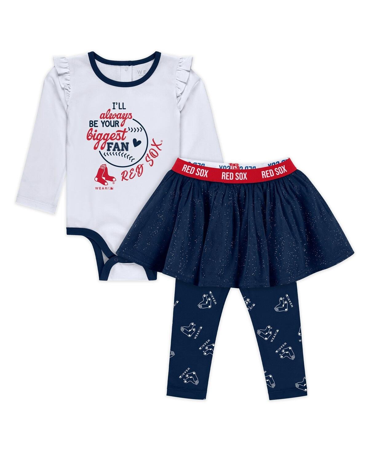 Outfit your littlest fan in Boston Red Sox spirit with this adorable Three-Piece Tutu Set from WEAR by Erin Andrews. The set includes a long-sleeve bodysuit with ruffled details, matching sweatpants and an adorable tutu, all adorned with charming Boston Red Sox graphics. This adorable three-piece set makes it easy to share your fan allegiance with your little one.