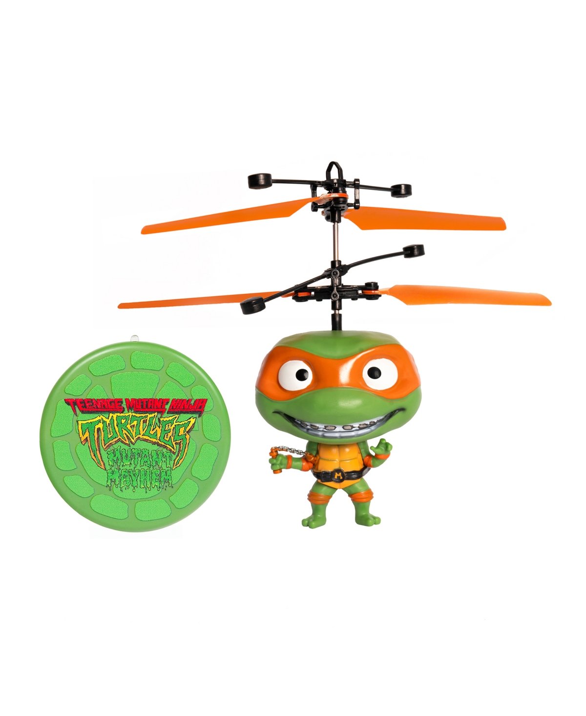 The TMNT UFO Helicopter – durable, lightweight metal toy. Fly with autopilot. Charge in car, at home, or on the go with USB charger. Avoid walls, pets, and objects with infrared autopilot. Develop hand-eye coordination and motor skills. Watch it fly over your hand.