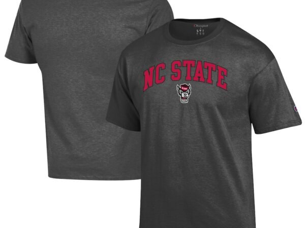 NC State Wolfpack Champion Arch Over Logo T-Shirt – Heather Charcoal